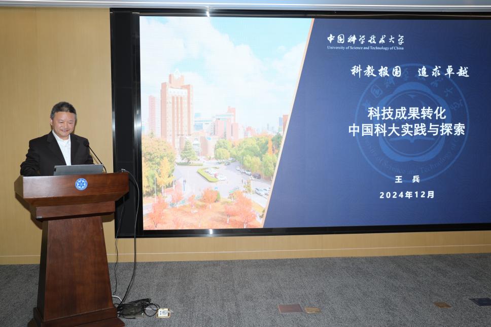 中國(guó)科學(xué)技術(shù)大學(xué)上海研究院常務(wù)副院長(zhǎng)王兵受邀作主題報(bào)告,圍繞中國(guó)科大科技成果轉(zhuǎn)化概況、科技成果賦權(quán)改革探索等方面,多維度分析“賦權(quán)+轉(zhuǎn)讓+約定收益”的“科大模式”,并同與會(huì)科技工作者就如何更好地提升科技成果轉(zhuǎn)化效能作了經(jīng)驗(yàn)分享。