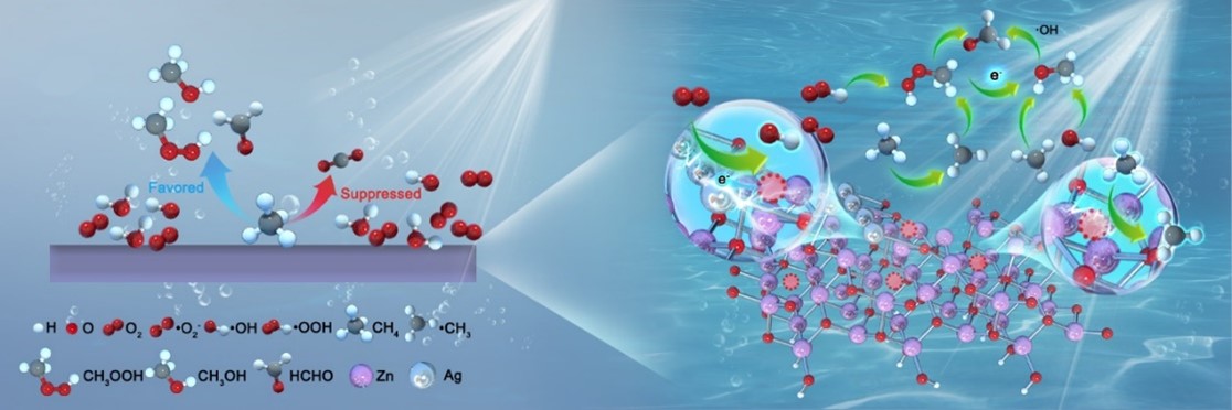 圖1. 3.0Ag/Z-450催化劑上光催化CH4氧化制備液態(tài)含氧化合物示意圖