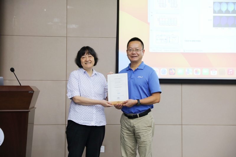 本次報告吸引了中心眾多科研人員和學(xué)生、博士后參加,共同探討如何通過基礎(chǔ)研究提升植物的廣譜抗病性,以應(yīng)對全球農(nóng)業(yè)生產(chǎn)面臨的嚴(yán)峻挑戰(zhàn)。何祖華院士主持了學(xué)術(shù)報告會,他首先詳盡的介紹了董欣年教授的學(xué)術(shù)背景、研究領(lǐng)域和取得的科研成果和學(xué)術(shù)榮譽。董欣年教授以“Enhancing Broad-Spectrum Disease Resistance in Plants Through Basic Research”為題,以其深厚的學(xué)術(shù)功底和前瞻性的研究視角,深入淺出地闡述了植物對廣譜病原菌的長期系統(tǒng)性獲得性抗性(SAR)的最新研究成果。她詳細介紹了研究團隊在理解SAR關(guān)鍵調(diào)節(jié)因子NPR1的結(jié)構(gòu)與功能方面的突破性進展,以及他們?nèi)绾瓮ㄟ^揭示防御蛋白質(zhì)組重編程中高度保守的翻譯調(diào)節(jié)模塊,為控制農(nóng)業(yè)作物疾病提供了全新的策略與思路。董欣年教授的報告內(nèi)容豐富、見解獨到,科學(xué)嚴(yán)謹(jǐn)?shù)膶W(xué)術(shù)精神贏得了與會者的熱烈掌聲。報告結(jié)束后,中心副主任巫永睿研究員為董欣年教授頒發(fā)了嘉許證書,感謝她為中心科研人員精心準(zhǔn)備的報告。